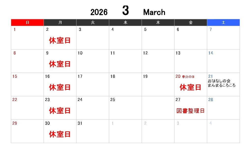 【時と場所:毎月第1・3月曜日 9:00~13:00 図書室】